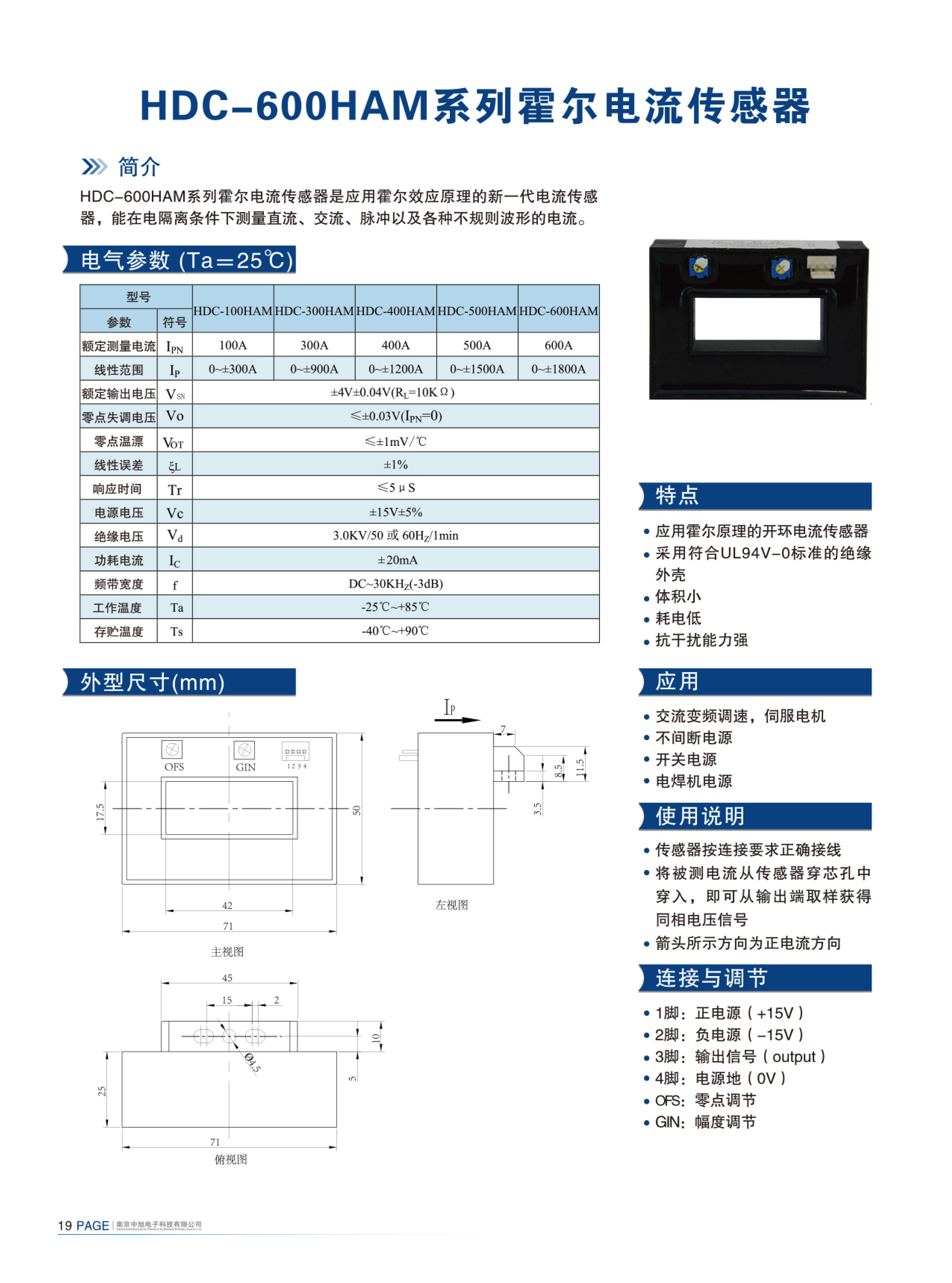 HDC-600HAM系列霍爾電流傳感器是應(yīng)用霍爾效應(yīng)原理的新一代電流傳感器,能在電隔離條件下測量直流、交流、脈沖以及各種不規(guī)則波形的電流。